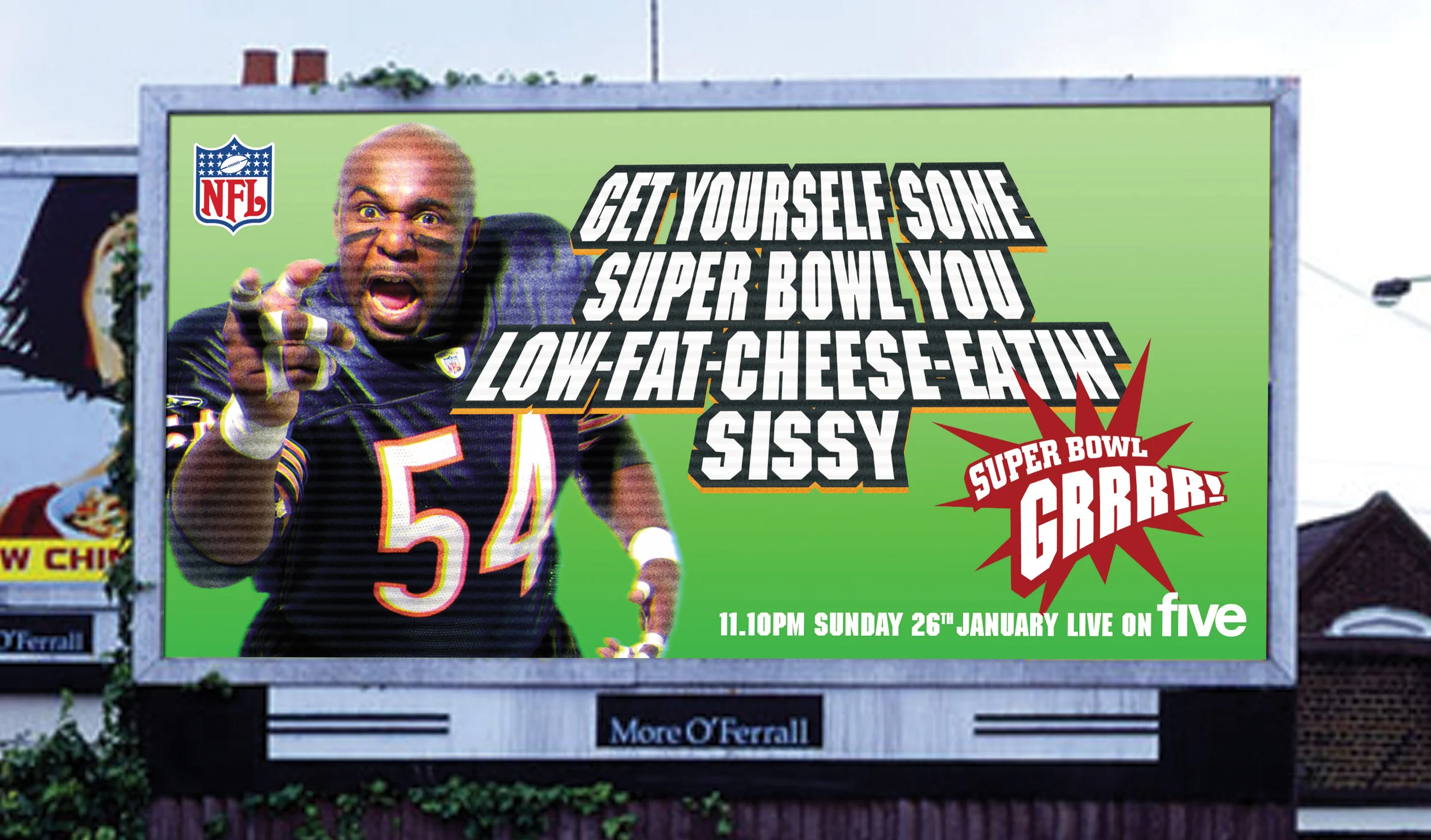The NFL UK wanted more young British men to watch the Super Bowl at midnight, on a Sunday night, in the dead of winter. Our approach was a campaign featuring burly American football players that would berate them for being a bunch of soccer-loving nancy boys in desperate need of some Super Bowl. It was obnoxious. It was dumb. It was borderline offensive. But we got to say "Super Bowl" as many times as we wanted and broke the viewership records for American football.